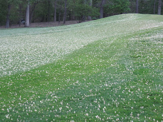 This method will take a little longer to achieve the desired results, but the process itself is very fast and is expected to take less time and labor to complete. The process involves 2-3 aggressive aerifications of the collar within a month or two, removing the cores, heavily watering the collar to soften it then driving over the saturated collar with a tractor to lower the level of the collar to the level of the green. It took two individuals approximately 30 minutes to complete the process on the other half of the big putting green by #1 tee. Keep in mind that this is not the final result we are wanting to achieve. This process will need to be done 1-2 more times to get it to the point where it matches the current condition of the collar that was done with the other process.